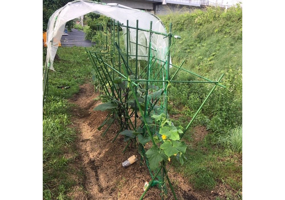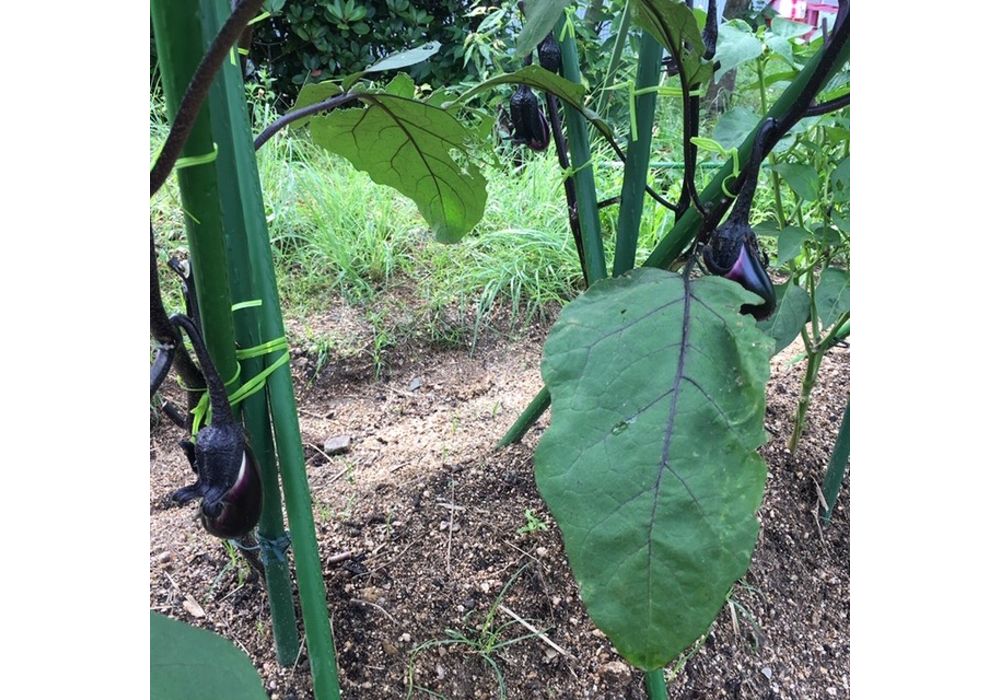きゅうり、ナスの実も初めて実りました。