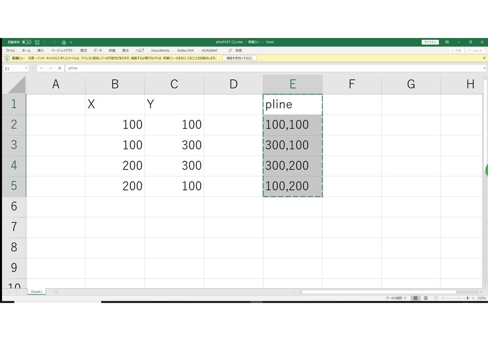 ①エクセルにX座標 Y座標を入力します。(測量座標系の際はCADと軸が変わるので、XYを逆に入力)